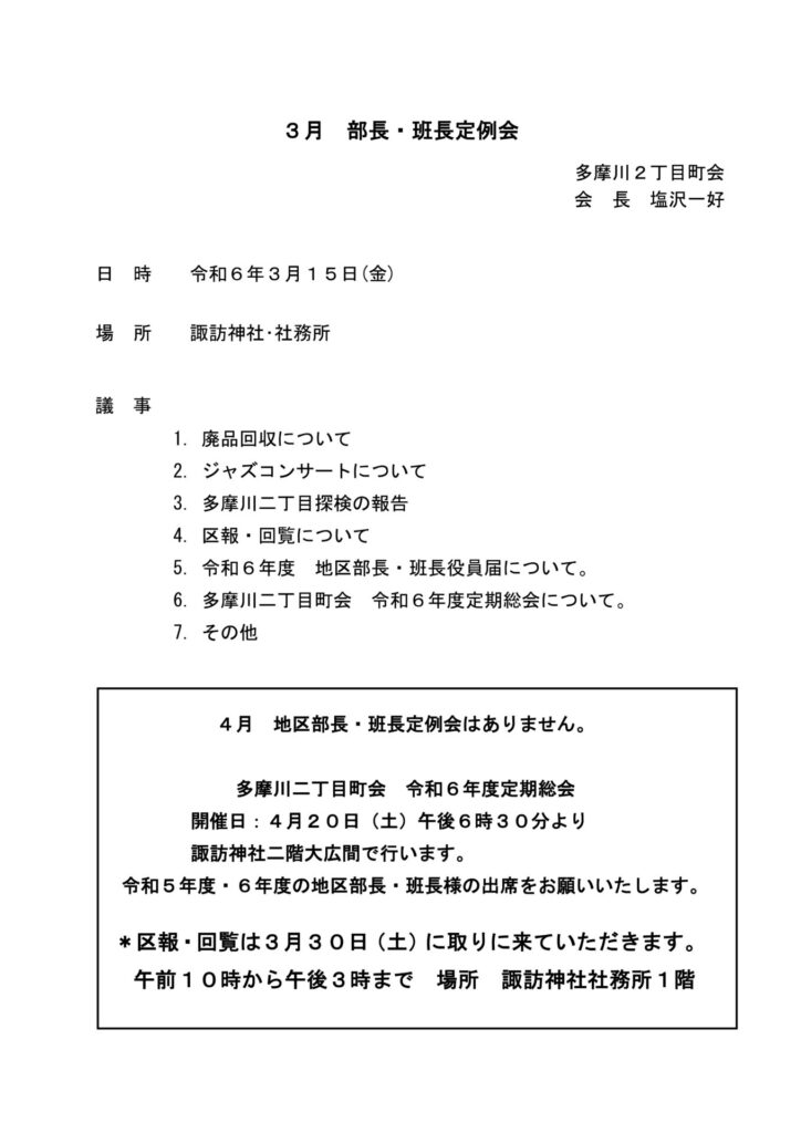 多摩川二丁目町会